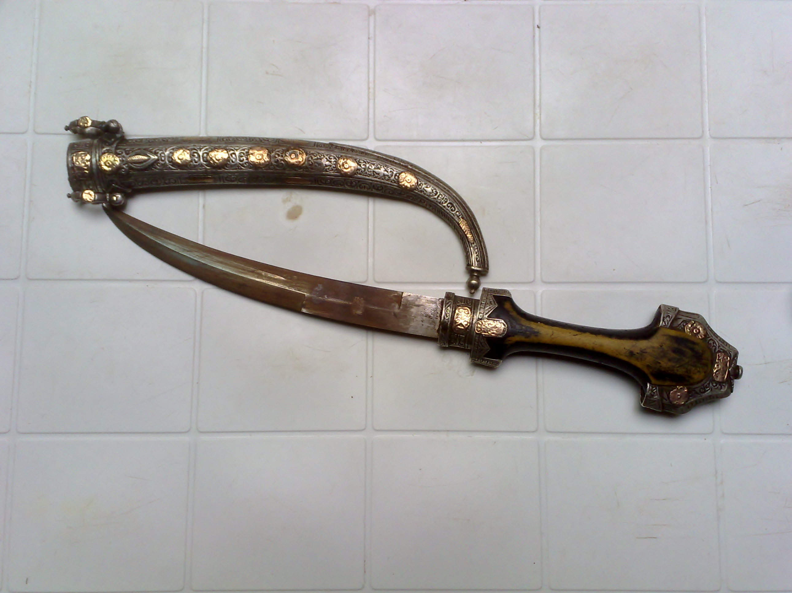 خنجر من الحجم الكبير من الفضة و مرصع بقطع ذهبية
