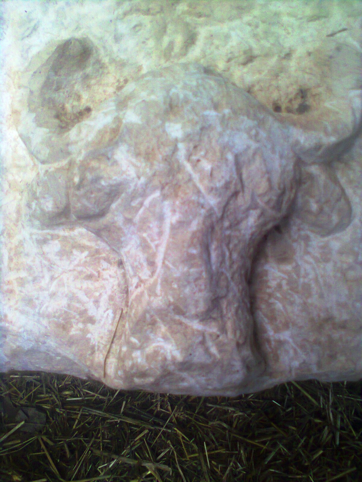 الرمز هو عبارة علي رأس ثور بعين واحدةنفر منحوت علي جهة الجانبية لصخرة .
