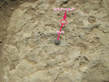 الاخ نجم الليل. الرجاء تقبل مروري وأنا ليس بالخبير المحلل ولاكن اعتقد أني رأيت شمال غرب المسمار على بعد ١٥ إلى ٢٠سم إشارة + أو أكس. وهي موضحة بالصورة المرفقة بدائرة حمراء. أرجو أن تفحص على الصورة الموجودة في حاسوبك لانها بالحجم الأصلي وتكون أوضح.