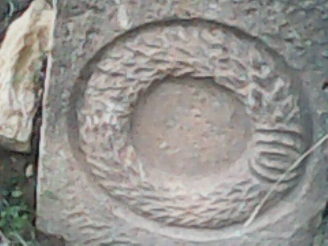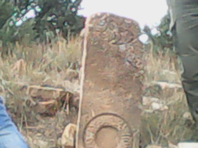 الاشارة عبارة على صخرة واقفة في اعلاها شكل اعتقد انه يشبه عقرب وفي الاسفل الدائرة الغريبة لم اتحصل على اي قياس