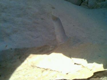 يوجد بعد المغاره رجم وتم ازاله الصخره الاولى من عليه وكان تحتحا العلامات الموجوده بالصور رقم 9 و 10 المرفقه