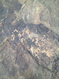 جنوب وجد الجره المقلوبه ويوجد عليها بصمتين علما بان العلامات التي على الصخره تحتوي على علامه العقرب
