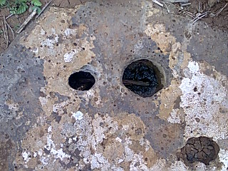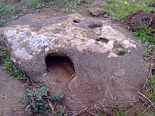 السلام عليكم اخواني صورت اشارة رومانية لم اعرف حلها وهي عبارة عن جيب صخري على حافة صخرة و جرنين واحد قطرة 7 سم والاخر 4 سم مفتوحين على بعضهم من أعلى الصخرة .