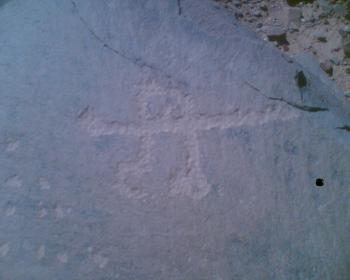 حياكم الله أخ صالحي الاشارة توجد تقريبا أسفل جبل في خلاء طبيعتها وعرة لكن ليست صحراوية قريبة من واد ,طول الصخرة حوالي المترين ونصف على بعد 50 مترا من الاشارة توجد صخرتان متوازيتان وفراغ صغير بينهما )10cm) عليهما اشارة قدمين في كل صخرة