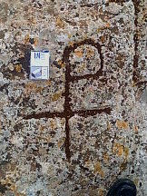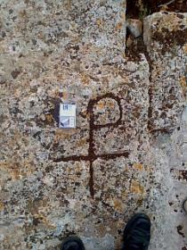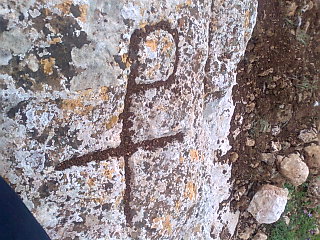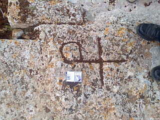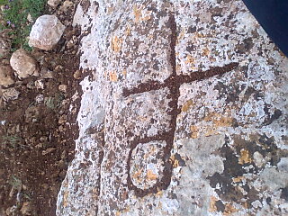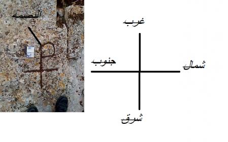 السلام عليكم .........هذا صليب شمسي على صخره ثابته..........مساحه الصخره الحامله للاشاره 1.5*1.5 تقريبااااا...........الصليب له ميلان نحو الشمال ...........يوجد على نهايه الضلع الحامل للعكفه بصمه طولها 3 سم ...........طول العكفه 30 سم ...........طول الضلع الحامل للعكفه من نقطه التقاطع حتى البصمه 25 سم.........طول باقي الاضلاع 15 سم وهذه هي الصور ........... البصمه هنا غير واضحه بسبب وجود التراب
