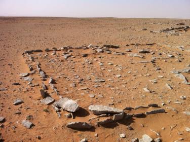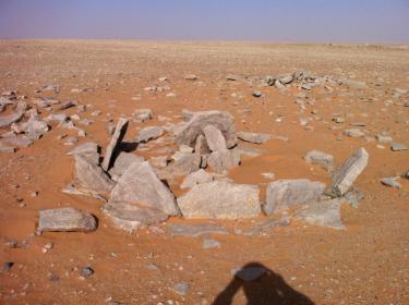 وجدت موقع غريب المعالم يوجد به رجوم كبيرة جدا وصير (حجر مرصوص شكل دوائر ) االغريب ان اغلب الحجر قريب من شكل المثلث وتم ايقافه الموقع يمتد لمسافات واسعه تقريبا خمسة كيلو بخمسة كيلو ويقع بالمنتصف جبل به عدة رجوم يطل عليها ويوجد حجر مرصوص وكأنه غرفه مربعة الشكل بجانبها ايضا عدة دوائر ووجدت حجر مثلت ىمخروم من الوسط تماما البعض يقول انه جرن والبعض يقول انه دربيل والله اعلم وعندما تنضر من خلال هذا الخرم ترى الرجم اللذي بالجبل من ناحية الجنوب تماما اترككم مع الصور وارجو من الأخوة الأعزاء الافادة مع شكري وتقديري للجميع