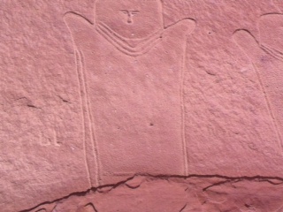 عندي موضوع جديد وحبيت اشاركم فيه , مجموعه لأربعة اشكال شبهتها لأصنام توقعاتي رجل وامرأه وطفل وبجانبهم شكل بس بدون ملامح ؟؟