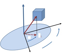 إن المسافة المتجهة من مركز المدار، المنتمي لمحور الدوران، إلى نقطة ما في الجسم الدائر هي متجهة التنقل التي تحدد موقع الجسم في كل لحظة من الزمن. هناك إسقاط لهذه المسافة المتجهة على المستوي المتعامد لمحور المدار وهي تكونالزاويةالتي تكونها هذه المكونة العمودية مع المحور وهي حسب موقع الزاوية للجسم الدائر. فإذا كان الجسم يتحرك في الاتجاه المخالف لعقارب الساعة فإن الموقع الزاوية يكون موجباً والعكس بالعكس