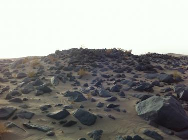 هذا صورة احد الرجوم وهم اثنان بجانب بعضهما الارتفاع تقريبا اقل من متر والقطر تقريباً متران ونصف الى 3 امتار مكون من حجار متوسطة