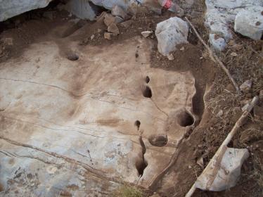 اخي حسن للتوضيح الصخرة التي عليها ساق والجرن كنت فوقها صخرةٌكبير بيضاء اللون تغطيها بالكامل وكان فوقها جرن كبير وعندما قمنا بتكسيرها وجدنا هذه الصخرة وهذه إشارات