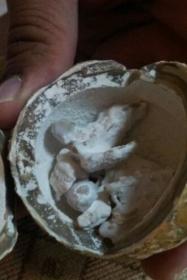 هذه الحجر + الحجره اللتي على شكل بيضه تم العثور عليها في داخل مغاره . الحجر البيضاوي كان بداخله كما في الصورة من ضمنها حجر صغير هذا الحجر الصغير اذا قمت باذالة هذه الماده البيضاء عنه يظهر لونه بالاحمر لكن بعد ان فتره يرجع الي لونه الابيض مجددا علما انن هذه الماده البيضاء الاشبه بالبودره ذات لمعه ..ارجو من له خبره حول هذا الشي افادتنا سواء حول النقش المكتوب على الحجر او عن الحجره البيضاويه..!