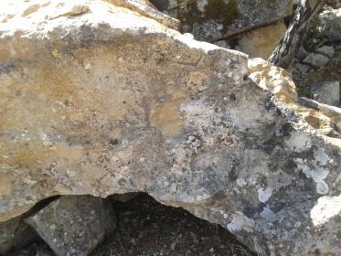 في كرمنا حرف L حفر على صخرة كبيرة طول أضلاعه حوالي 7 ب 15 سم.