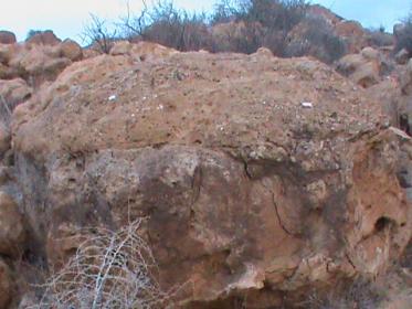 - بجانب هذه الصخرة وجدت صخرة تحمل جرن دائري يخرج منه سيال أو ما يشبه الحفر غير المنتضم يتجه في اتجاه الصخرة المشكوك في أمرها قطر هذا الجرن لا يتجاوز 15 صم حسب تقديري - نسيت أن أقيس قطره -