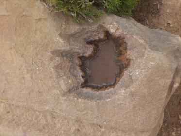 قد تستدلّ اليها بصخرة كبيرة أو حجارة على وضع دائري مثلثة الرؤوس