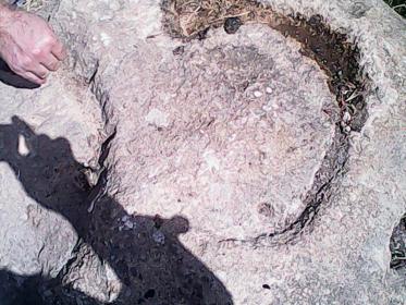 قرن عمق عشرة سنتيم وقطر عشرة سنتيم على صخرة في اتجاه القبلة