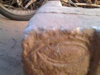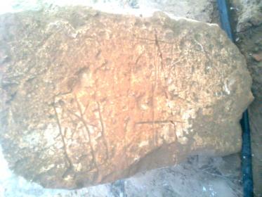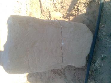 هذا الحجر اقتلعه محراث من فوق حافة جدار صغير و طويل و كان مثبتا بما يسمى " الشهبة و الجير" على طول الجدار ( شمال-شرق / جنوب-غرب) والوجه متجه شمال الشرق
