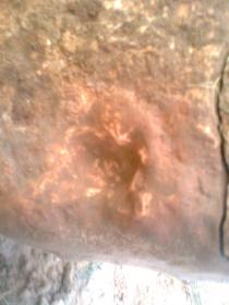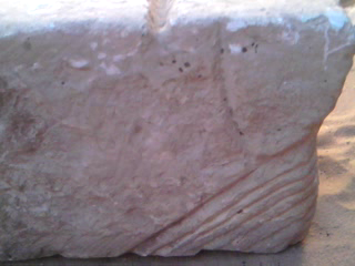 من فوق.. سيال بعرض 2سم .. يقطع الحجر بالعرض يظهر من جنبي الحجر .. و شيئ لم اتبينه متقاطع مع السيال .. كأنها دعسة قدم خفيفة و الله أعلم
