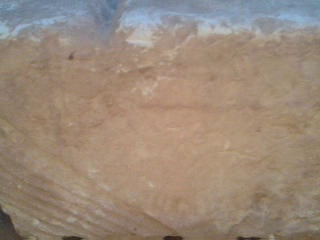 من الأسفل ثمة جرن دائري صغير .. وحفر يشبه القوس