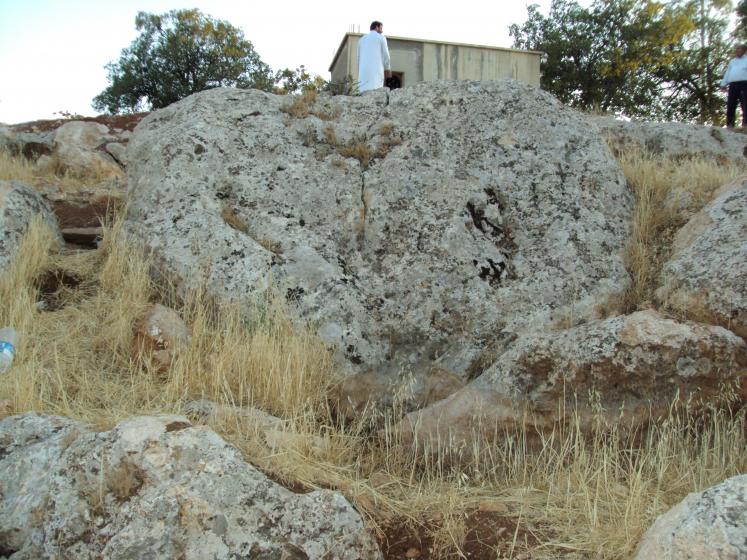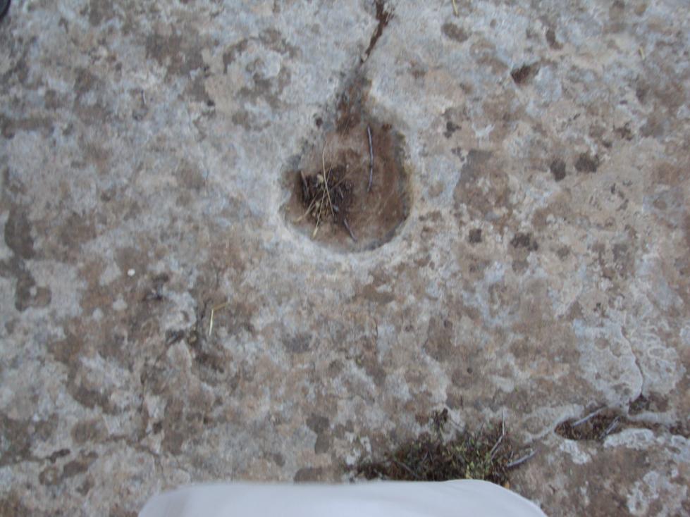 وأمام الصخرة قدم كبير الحجم أمام الباب طوله تقريباً 35 سم على صخرة ثابتة