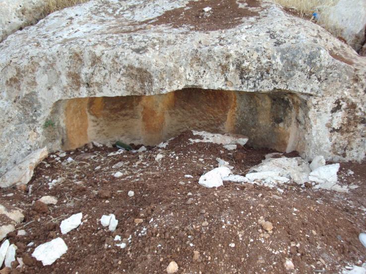 طبعاً المنطقة كأنها مجموعة من الصخور تحيط بسهل منبسط كأنها من حول السهل وهي الآن عبارة عن مزرعة للزيتون ولكن صاحبها بعد ما الله رزقه هجرها كونه قد اشتراها والله أعلم من أجل الدفين كما قال لي أهل المنطقة