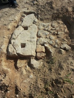 هل اكمل الحفر لاظهار الحجارة المتراصه امام الصخره والتي يبدو انها تمتد لمسافة اربعه متر غربا وصولا لاساس حائط ظاهر للعين وواضح الملامح ؟