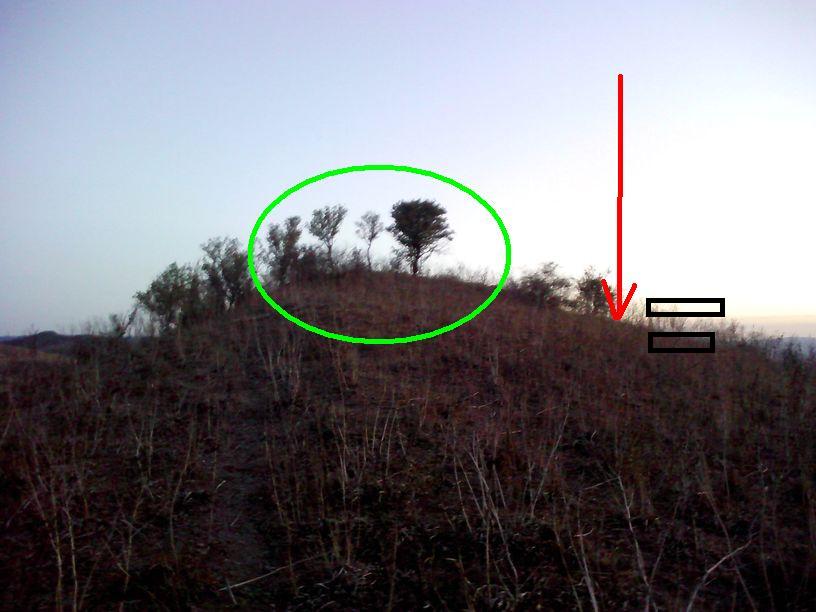 انظر الى الصورة المرفقة هل الصخرتين في تلك المنطقة التي اشرت اليها بسهم وماذا يوجد اعلى الربوة بالظبط هل هناك صخور صغيرة وكثيرة او دائرية