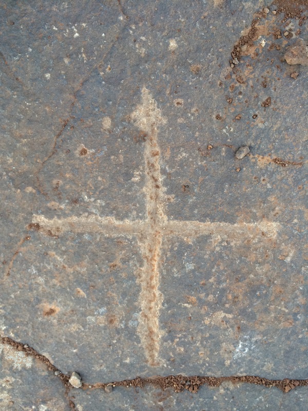 بجانب الصليب على بعد 5 متر يوجد اشارة + محددة الطرف لكن اعتقد انها للحدود فقط بين الاراضي اي انها جديدة