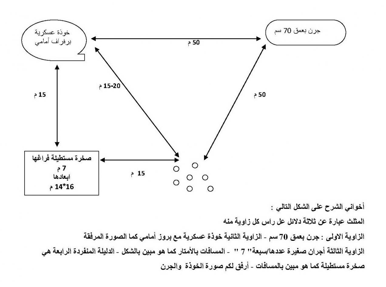 إليكم المثلث البرمودي التالي أضعه بيتن أهل الخبرة والاختصاص أن يساعدونا في فك طلاسمه و تفسير رموزه لن أضيف أكثر فالصورة المرفقة التي رسمتها بسبب عدم امكانية تصوير الموقع تشرح نفسها والله أعلم كما أرسل لكم صور الخوذة والجرن