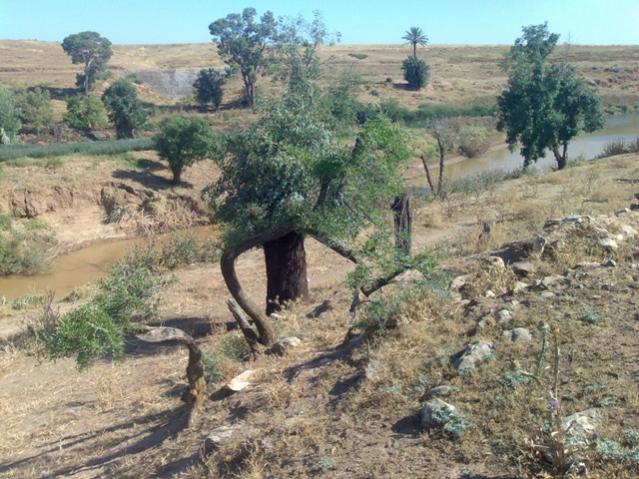 هو مشرف على ضفة نهر و بينه وبين النهر شجرة سدر تبدو معمرة و الله أعلم