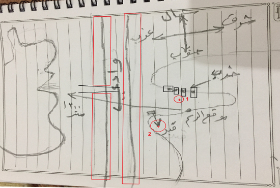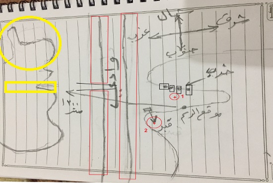 المهم حاليا ارسم خارطة مكانية للموقع واذكر كل شي وحدد بالنظر أمامك بنفس اتجاه الزائد