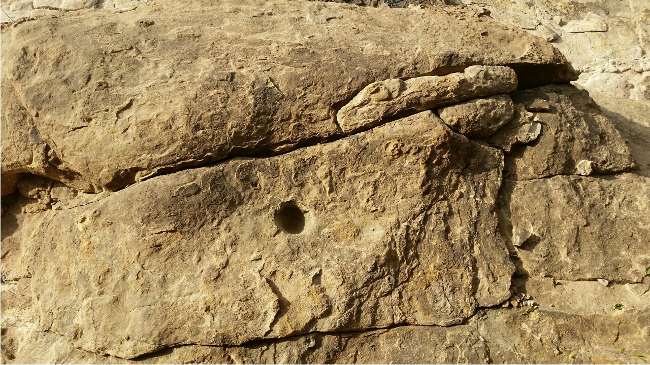 اشاره جرن على شفته بصمه او ثلم واشاره سهمين ورسمتين يد