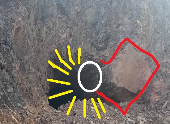 الأصفر يظهر لنا أنهم استخدموا معدة كبيرة للدخول لمنتصف المغارة مباشرة