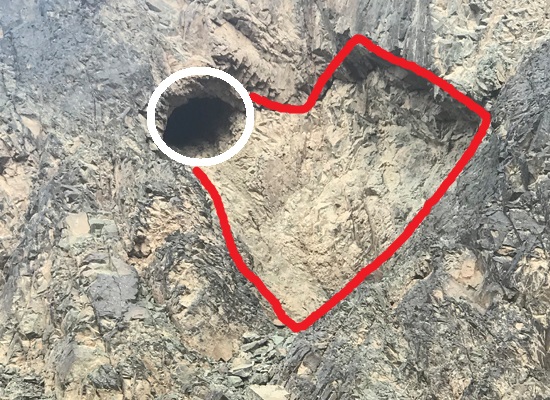 الموقع الثاني استخدموا مغارة طبيعية مدخلها فتحته تميل للأسفل تدخل لها لأعلى ثم تنزل بعدها للمغارة