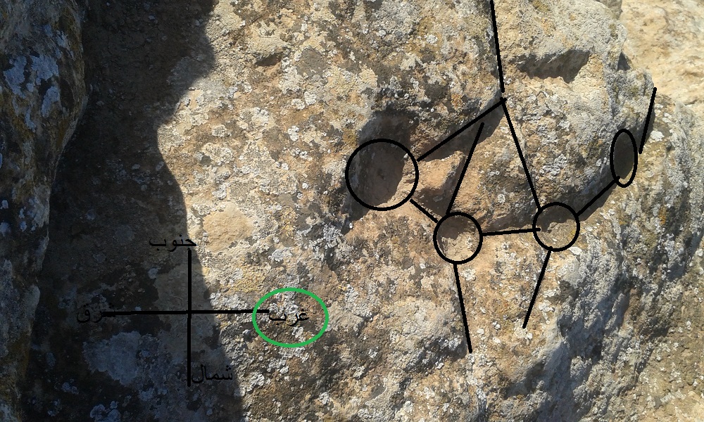 اشارات جرن بسيال بجانب الصخرة بيها 3 جرون مستطيلات