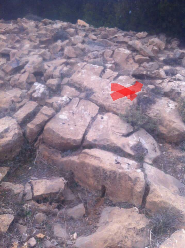 عثرت قبل فترة بمنطقة جبلية بمنحدر صخري مقابل للشرق ع علامة اكس...ليست حفر..نفر نوعا ما بطينة صلبة.. اقرب لتكون رسم 20cm×20cm