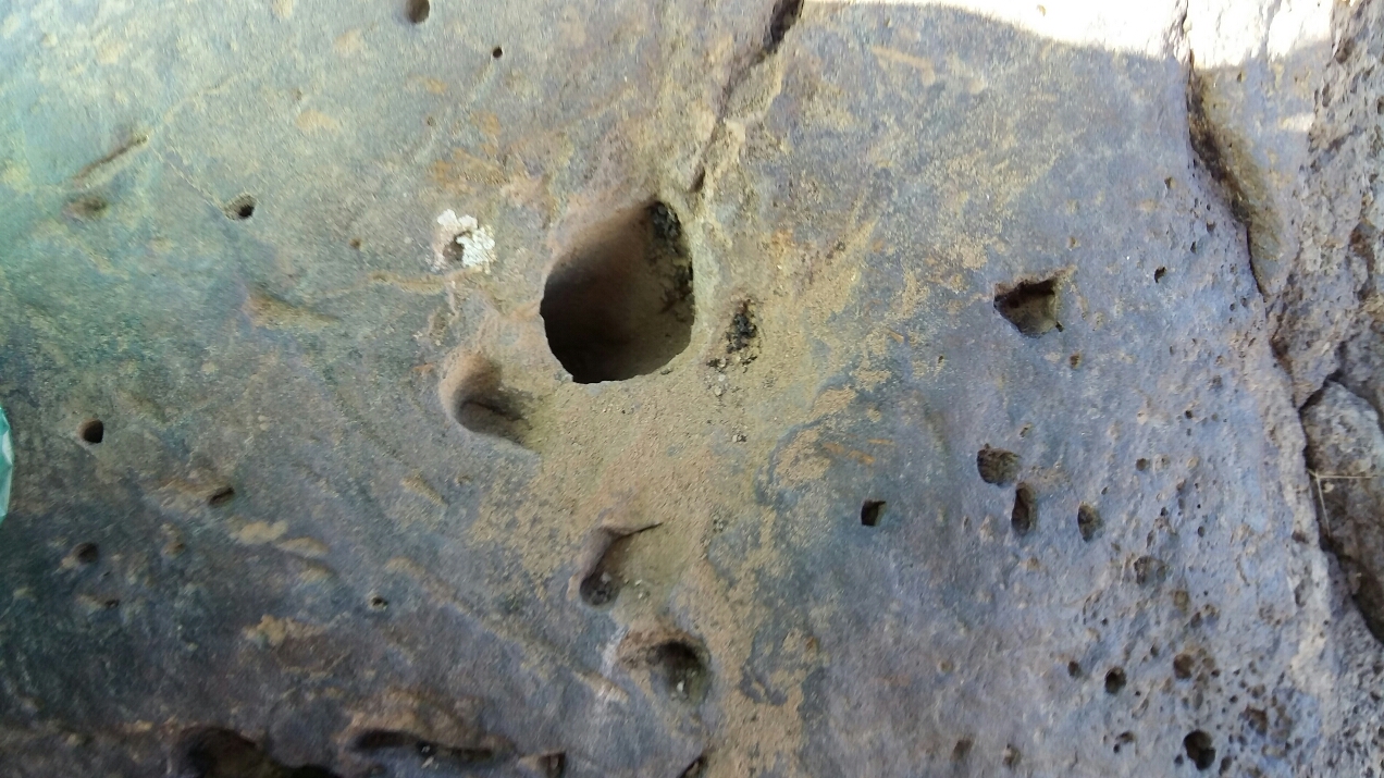 الجرن موجود في صخره ثابته في الأرض في منطقة جبليه على سفح جبل في منطقه شبه مستويه