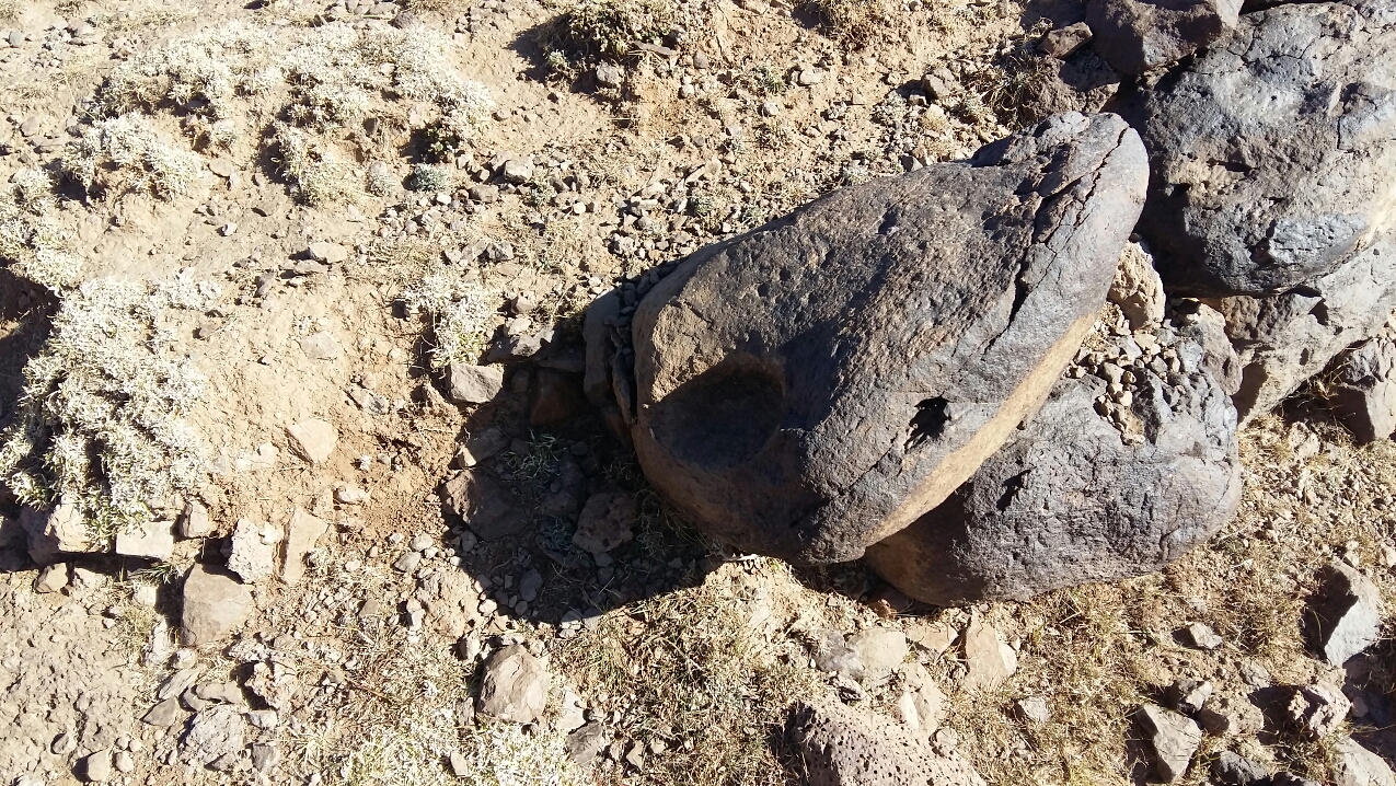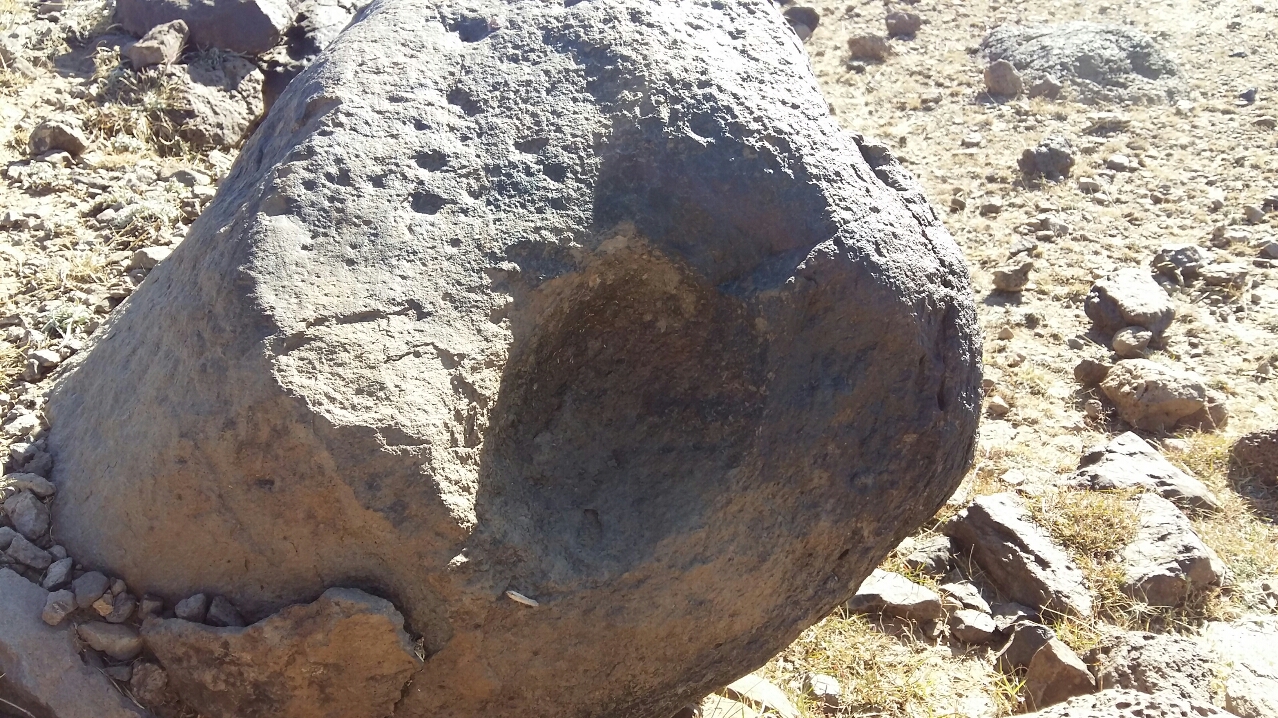هناك بمسافه تبعد عنها حوالي من 10 الى 15 متر يوجد على صخره ثابته جرن مثلث جانبي في اسفل الصخره عمقه 5.5 سم واطوال اضلاعه كالتالي (الاول 5.5 سم و الثاني 5.5 سم والثالث 6 سم)