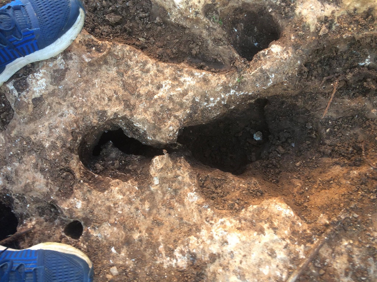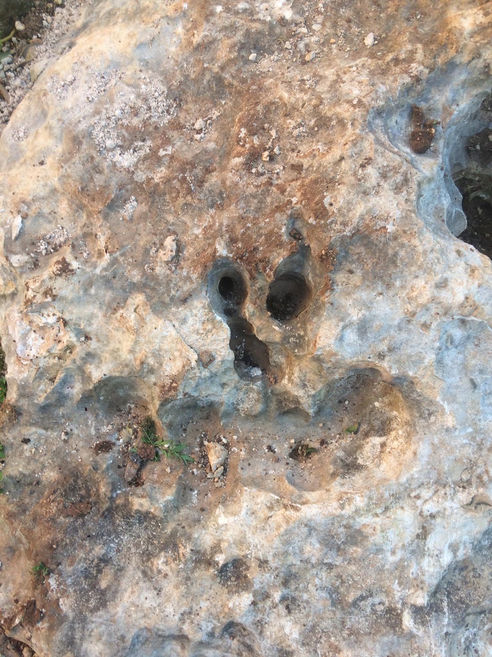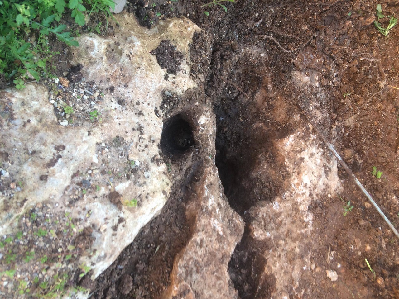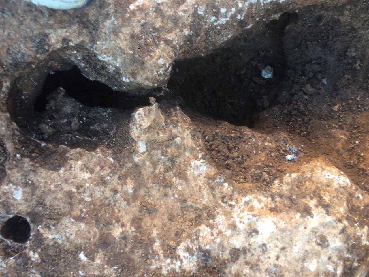 على بعد اقل من خمسين متر شمالا جميع انواع القص الصخري ضخم وصغير ومتوسط ... علامات بالصخور من سيالات وجرون عادية وجؤون مخروطية وشجرة زيتون مجوفة داخل تجويفها رجم حفرنا تحته فوجدنا فخار مكسور ثم صخر لذاك لم نكمل