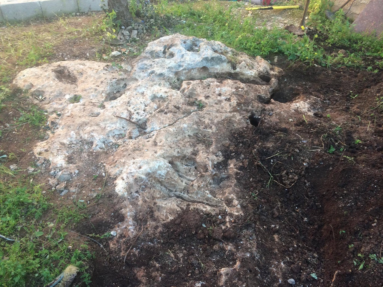المشكلة ان هذه الصخؤة داخل فناء بيت والمنطقة المجاورة لها مسكونة من جميع الاتجاهات الجيران وما شابه ... طبعا يوجد سور وبعدها شارع اسفلت ... انا فقط اريد ان استفسر هل هناك احتمال لوجود دفين اسفلها