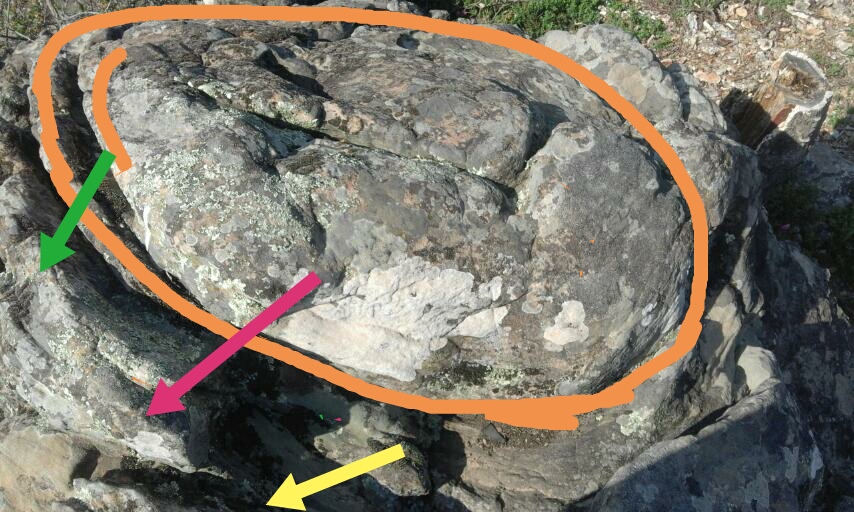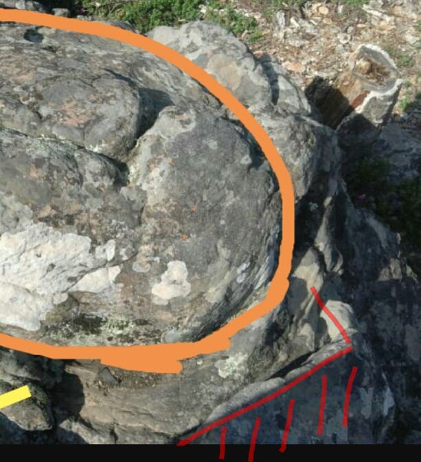 انظر اخي ازهار الربيع الي الرسم والايهم الرسم للمجسم هكذا شكله علي الصخرة كانه ضفضع فاتح فمه داخل بركة السهم الاخضر يشير الي الفم والاحمر للمجسم والاصفر للبركة والله اعلم ...ان لم يكن مجسم ضفضع هل بظهر لك شي اخر