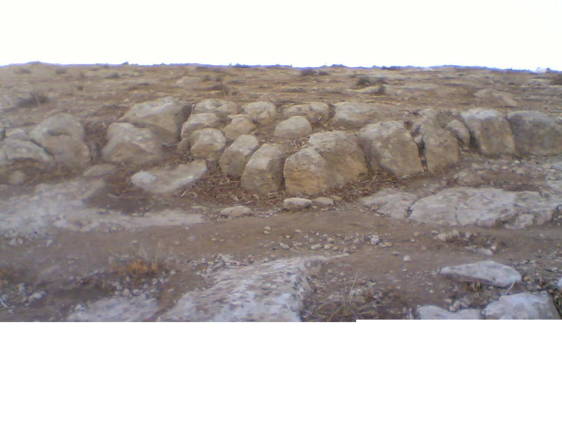 سبعة اجران بجانب بعضهم وامامهم سبعة بنفس الحجم وامامهم جرنان اي اثنان وكلهم بنفس الحجم قطرهم خمس سم وقد اتو على صخرة كبيرة والصخرة نفسها عبارة عن رجم كبير