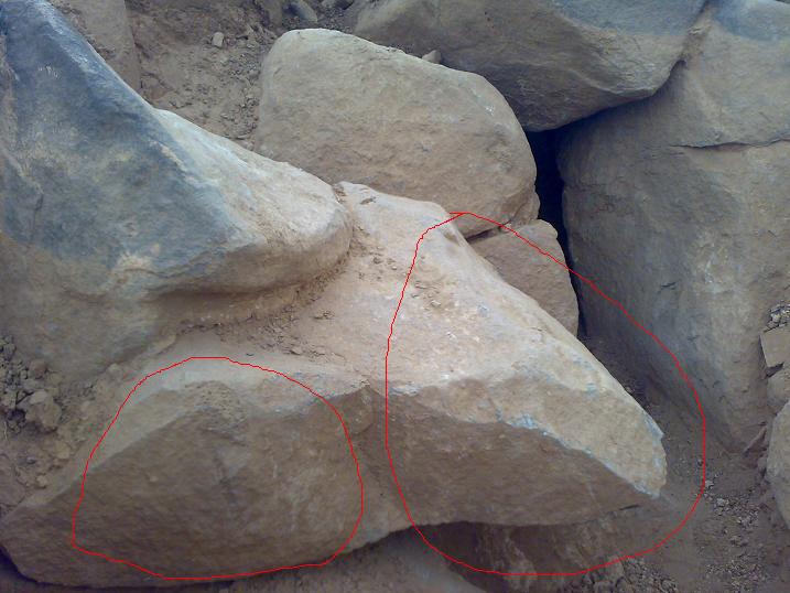 السلام عليكم.اخي الكشاف وابو سلمى صورة المنطقة ولكن اخواني الكرام .هده الصورة توجد مع الصخرة التي فيه الشق في اتجاه الغرب .واما الصورة الثانية فهي للبصمتين من الاعلى الى الاسفل كما قلت اخي في اتجاه مستقيم تتجه الى الغرب واما الثالثة فهي صورة لصخرة توجد علي مسافة تسعة امتار تقريبا واما قياس الشق علي الطول 27 سنتمتر والجرن الاسفل 9 سنتيم في الطول على 5 سنتيم والجرن العلوي 7 سنتيم على 4 سنتيمتر واما في اتجاه الاسفل للشق توجد تربة وهده التربة بيضاء و على السفح وساتيك بالصور ان شاء الله لان الصور صورتها ولكن لم تبقى غير هده الصور كلها تلفت وشكرا