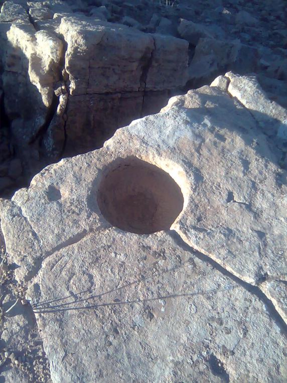 عندما قمت بالحفر بجانب الجرنين البيضاوي والجرن الاخر وجدنا ان هذه الصخرة النافرة تاتي على شكل شبيه بقلب الحب
