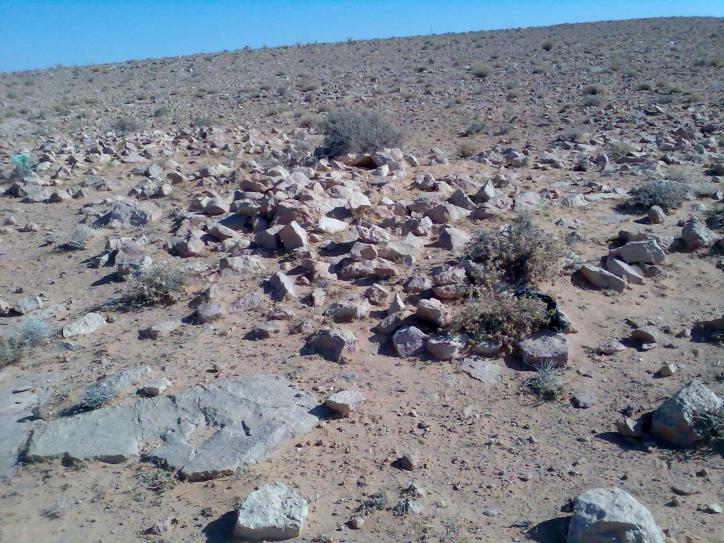 ان لم تجد اي شيء او اي اشارة اخرى امشي بخط مستقيم امامها لماسفة 10 -20 متر وابحث عن اي قص بالصخر او جرن او اي اشارة اخرى