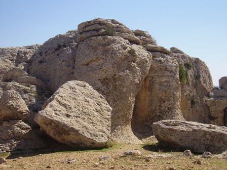 الاخ سلطان ماذا يوجد مقابل هذا الجرن وانت واقف امامه ماذا ترى صخر ام لا شيء وهل ما داخل الجرن مختلف عن الصخر المحيط به وهل اذا ضربت عليه بحجر تسمع صوت فراغ