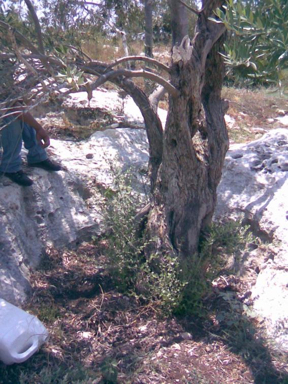 الجرن تحت الشجرة على ماعتقد مهم نضف وصور من بعيد حيث تضهر كافة المعالم وضع القياس