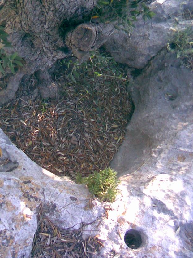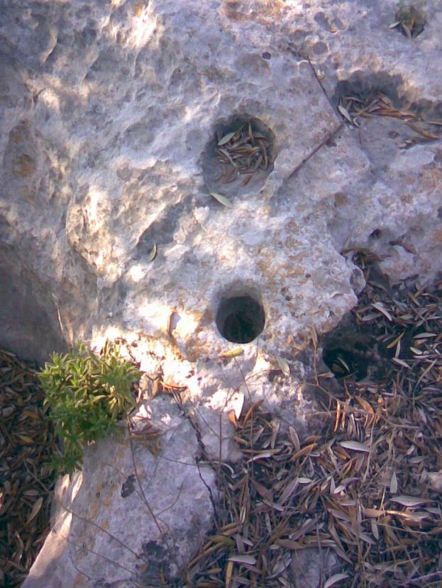 و بالنسبه للجرن الي بجانب الشجره في جرون مثله على كامل الصخره حولين الحجر بشكل هندسي و منتظم على داير الصخره والشجره في المنتصف