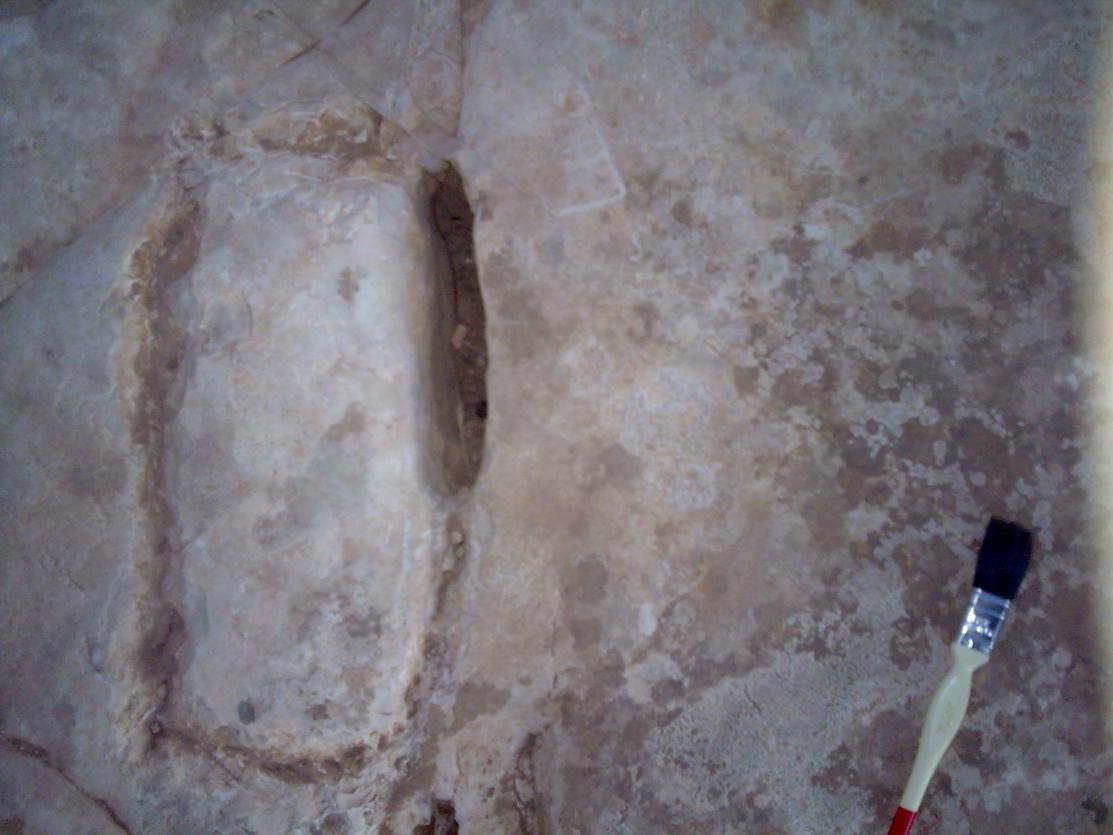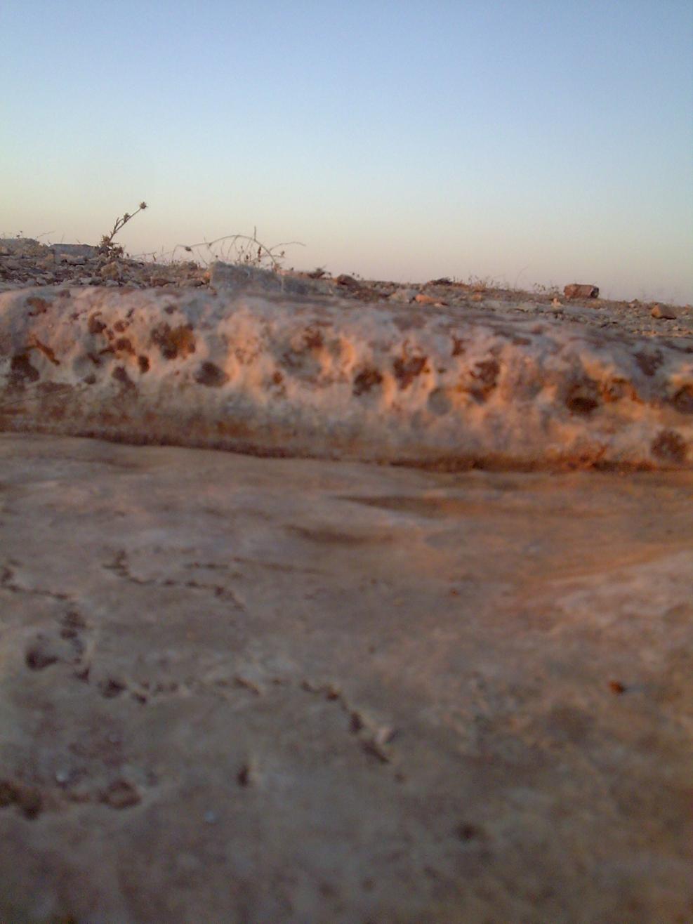 السلام عليكم ورحمة الله وبركاته اخي العزيز مستكشف ذهبت الى الموقع ونظفت الصخرة فوجدت انها عبارة عن مجموعة صخور ملحومة ببعظها فكسرت من طرفها قليلا فوجدت الصخرة كأنها رخام ووجدت ان عليها بعظ الأشارات وهناك مقابل المستطيل تلة هيى اعلى تلة بالمنطقة وتبعد عنها حوالي 400متر تسمى تل الغريافي واليك الصور