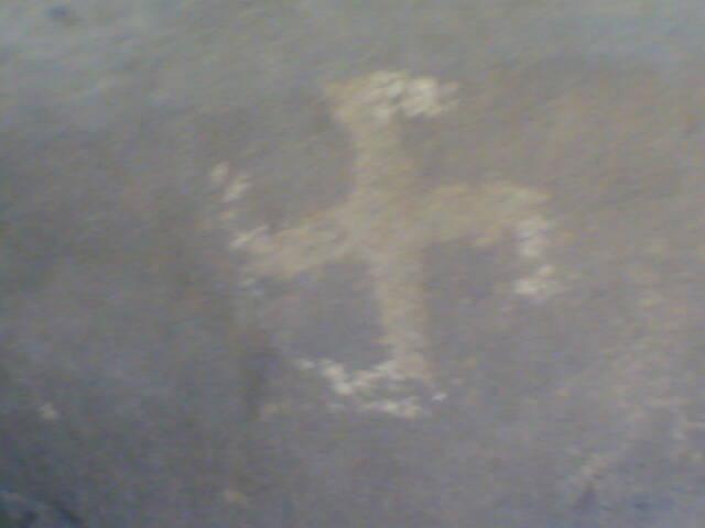 هذه صور لصليب واقدام وحروف تي واشاره تشبه المشعاب عددها ثلاث وثلاثه حرف تي مع بعض وحذا كبيره وحذا طفل وجرن مغلق بماده صلبه لاادري ماهي واثار طلقات وكلها بالصور ماعدا المشعاب