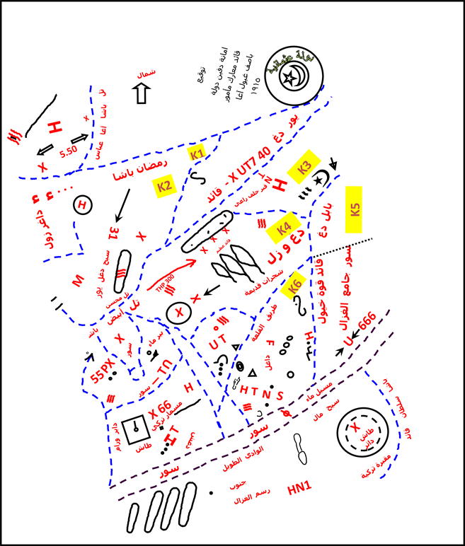عندي خريطة عثمانية بالية جدا - وقمت بنسخ الصورة للتوضيح بالرسم الشفاف ولكن هناك 6 كلمات لم استطع قرائتها